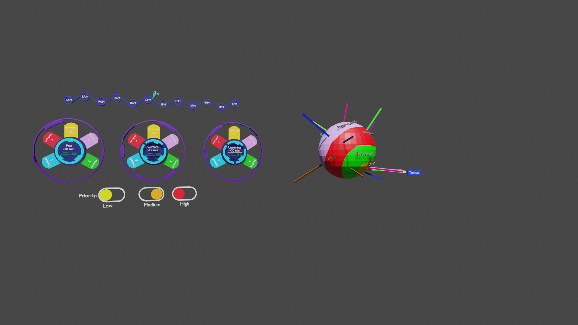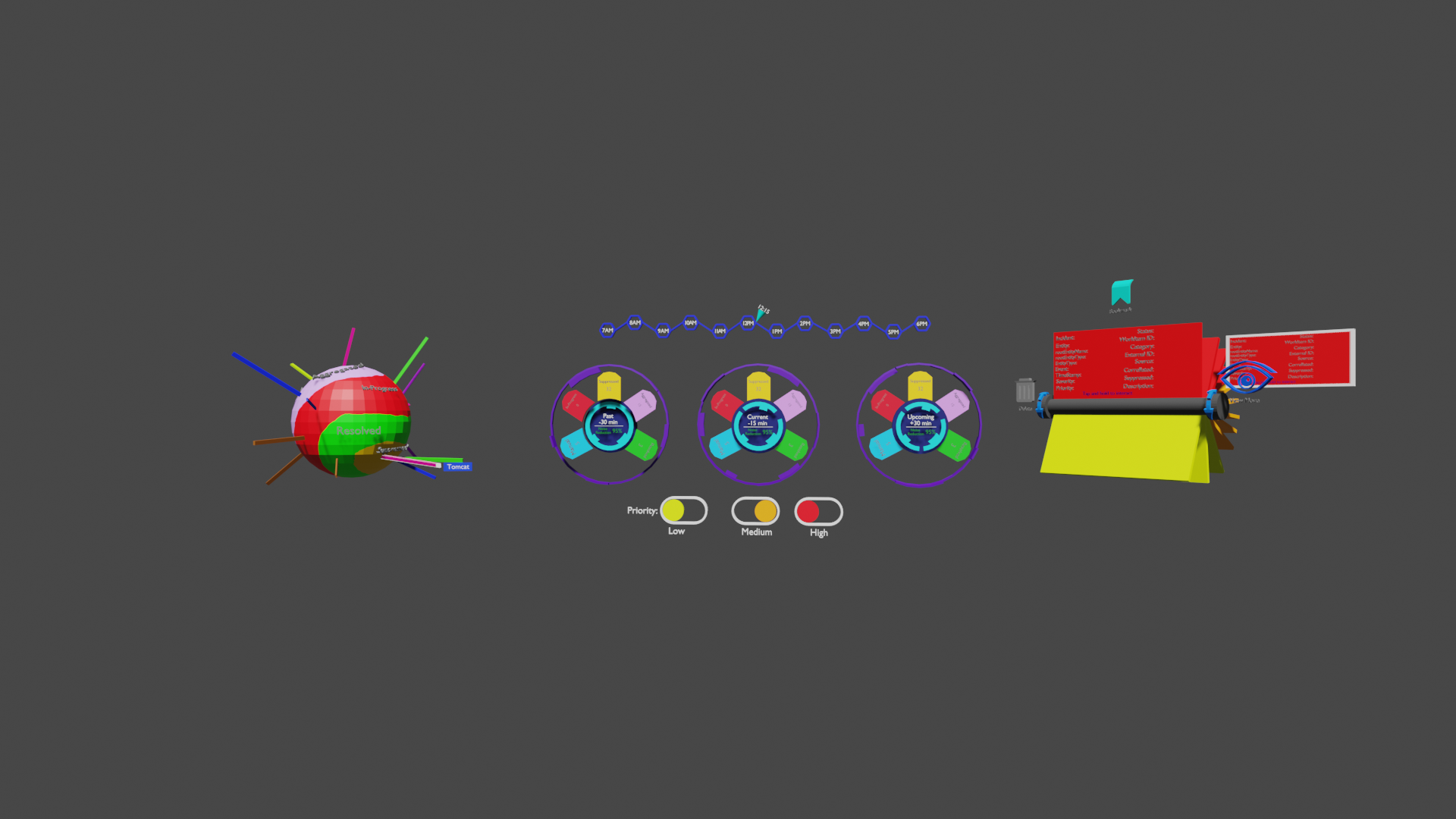 Enterprise IT environments are incredibly dense, and traditional dashboards often overwhelm users with data and are visually confusing. Our challenge was to reimagine how system admins and analysts could interact with this information—using spatial design to reduce cognitive load and allow users to see exactly what they need, when they need it.